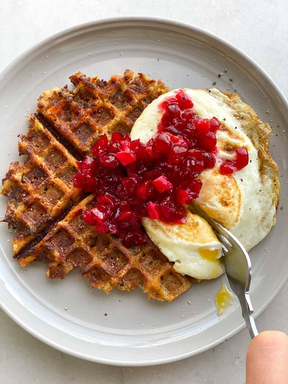 Got leftover stuffing after the big meal? Turn it into crisp waffles topped with a fried egg or cranberry sauce — creative, fun, and a sweet little nod to making the most of everything.