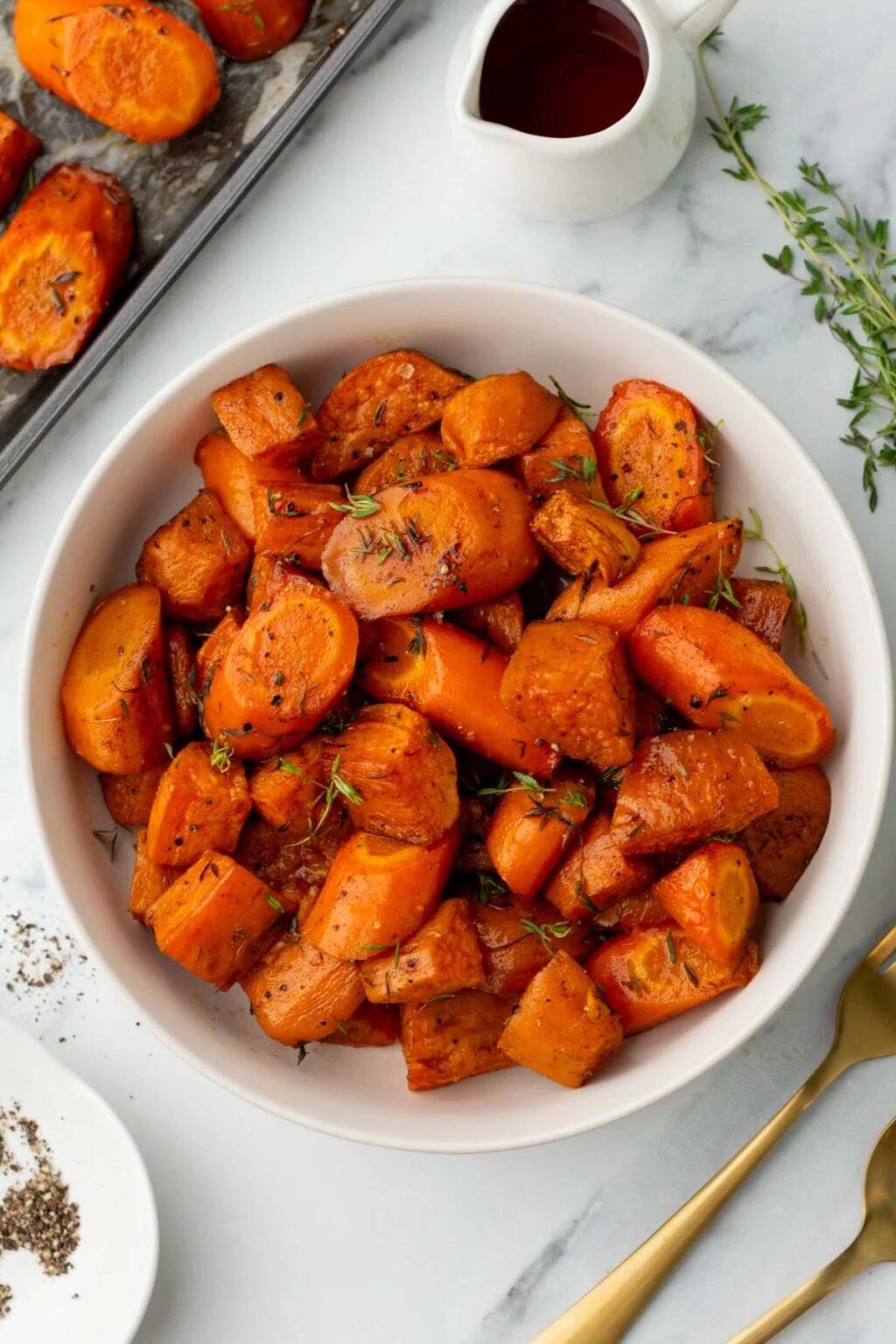 An easy side with minimal fuss: sweet potatoes and carrots roasted with cinnamon, maple syrup and fresh herbs cozy, wholesome, and made-ahead-friendly.