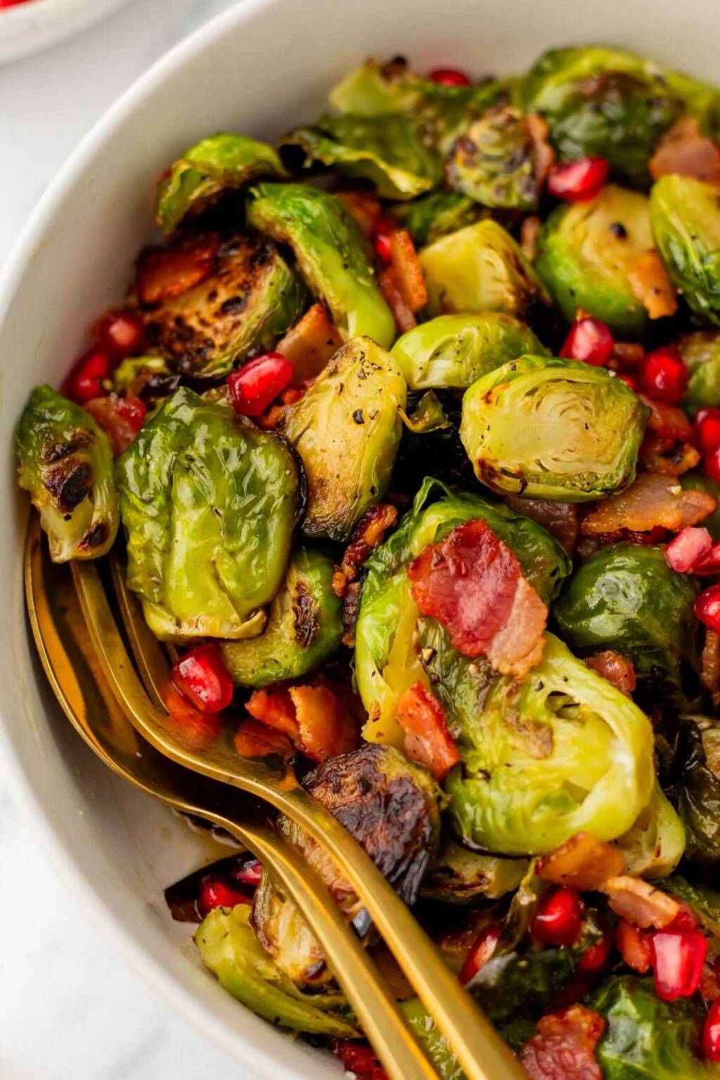 These brussels sprouts get caramelised edges, smoky bacon bits, and a drizzle of maple syrup — savory, slightly sweet, totally crave-worthy while still being veggie-forward.